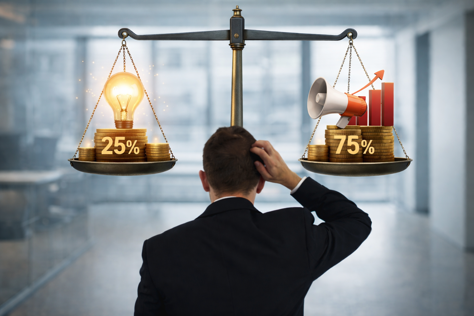 Algumas análises sobre eficiência de marketing indicam que empresas que otimizam a alocação do orçamento entre criação e amplificação conseguem resultados significativamente melhores. Em alguns casos, organizações que ajustaram esta distribuição conseguiram reduzir o custo de aquisição de clientes (CAC) até 73%, ao mesmo tempo que melhoraram o crescimento do negócio. Ou seja, a forma como o orçamento é distribuído pode ter um impacto direto na eficiência do marketing.
